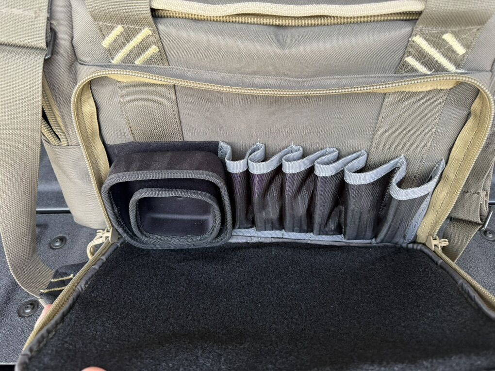 The GPS M/L Range Bag holds 5 medium frame handguns and features a Visual I.D. storage system to organize gear. With lockable zippers, extra magazine storage, and a pull-out rain cover, it offers security and protection. Lift ports make for easy maneuvering, while specialized pockets keep your accessories organized.