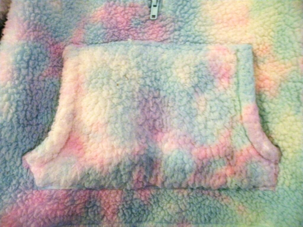 Cute and Cozy Fleece shirt with quarter zip and pockets in front. In variegated colors of pink, blue and purple. Your little girl will love being snuggly warm in this. Can also be used as a mid- weight jacket. It is in good condition with no pulls or tears. Zipper works properly and can zip all the way up to a turtleneck. It will fit sizes 7/8.