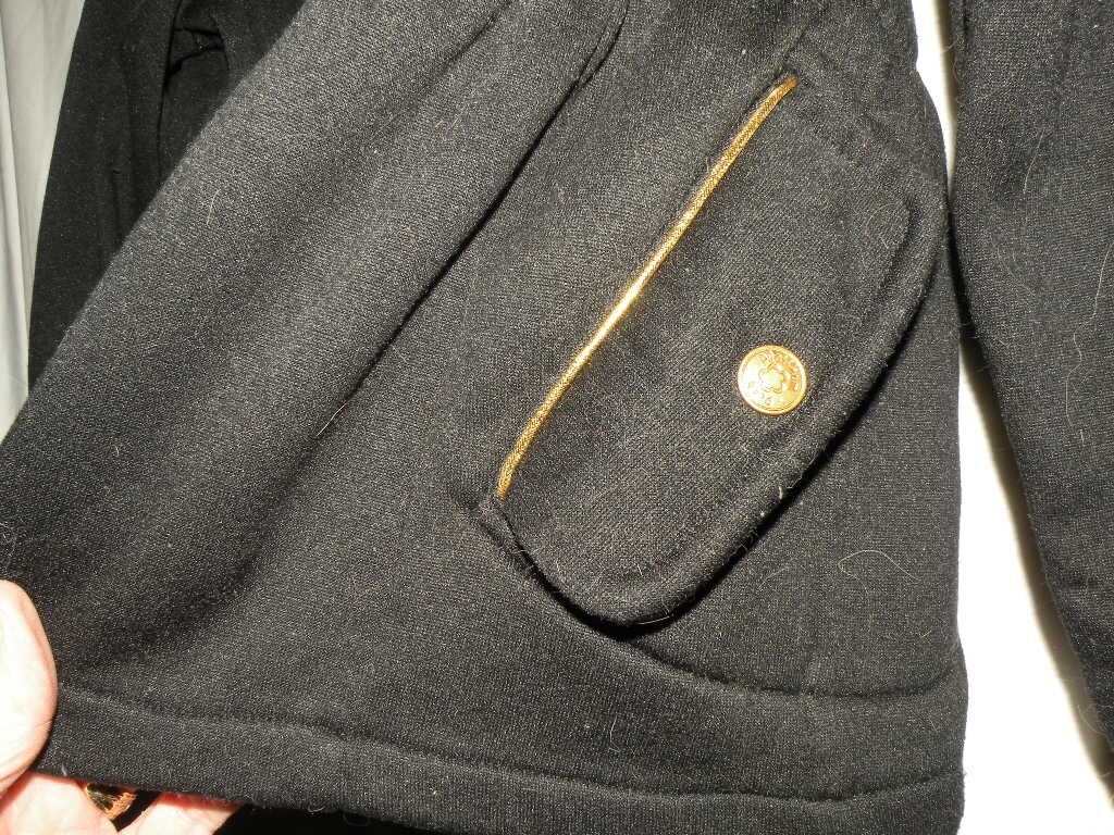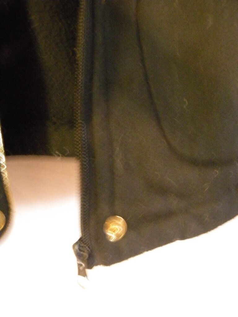 Pink Platinum Girl's Light Weight Jacket with Pockets. Your little girl will love feeling stylish in this jacket with gold trim down the front and on the pockets. Its lightweight, like a sweatshirt with fleece lining and hood. It also has an elasticized waist that will keep her snuggly warm when the wind blows. The pockets also have a snap to keep her gloves securely in them. It zips and snaps all the way. The sleeves are also elasticized to keep the cold air out. This is a great jacket and still has a lot of wear left in it. It is a true 7/8.