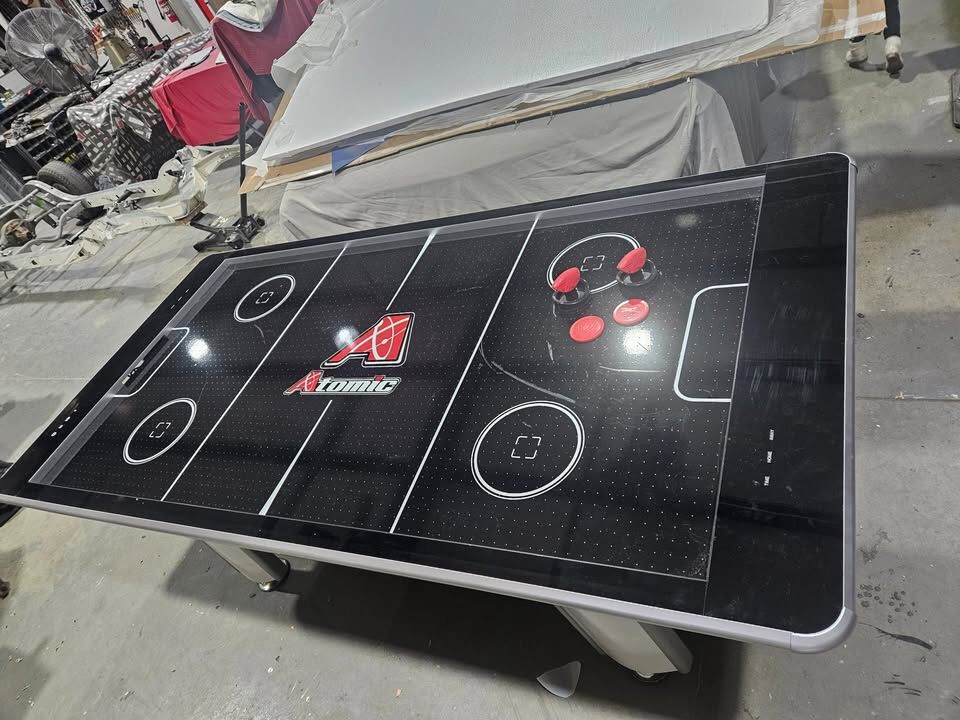 Atomic 8' Air Hockey Table, works great, LED scoring inside acrylic rails,120V Motor, Touchscreen style controls inside acrylic rails $600