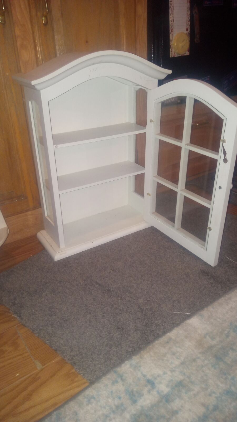 Matching corner shelf with cute curio/ medicine cabinet selling as a pair for $100 or separate $75 for Cabinet and $25 for cornershelf