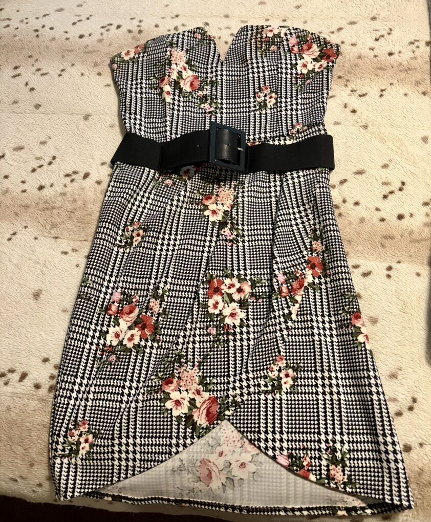 VenmoSelling this gently worn strapless floral plaid dress, it has only been worn once. Comes with a black belt. Basically brand new. Asking $20.