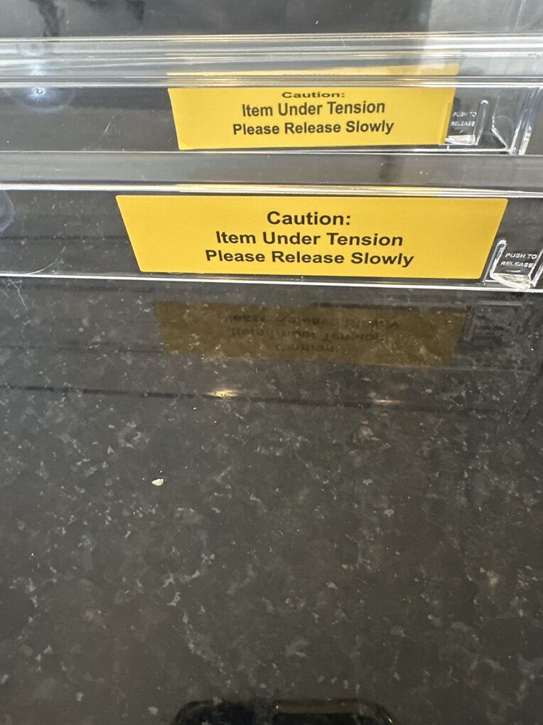 The home Edit brand drawer dividers. Plastic dividers to organise your drawers. 2 in its box. There’s a tiny broken park near the wheeling device. It could probably be glued. And it doesn’t seem to affect the item from gliding or working properly. Comes with sealed package of rubber covers for each end to protect the drawer. USE CAUTION OPENING THE BOX. THESE WILL SLING RIGHT OUT