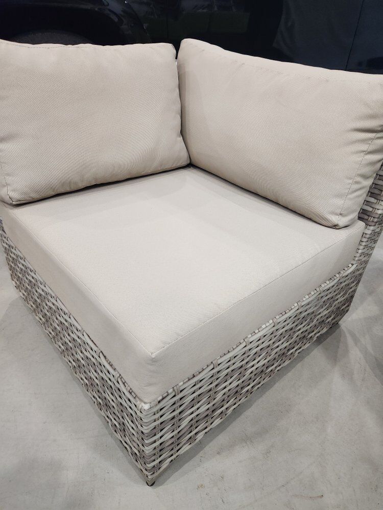 VenmoSuper comfy oversized patio chair that kids flock to. All weather polyethyline rattan on a metal frame ensures long-lasting durability. Khaki colored outdoor upholstery with zippered, removable covers. 35 inches square, 29 inches tall.
