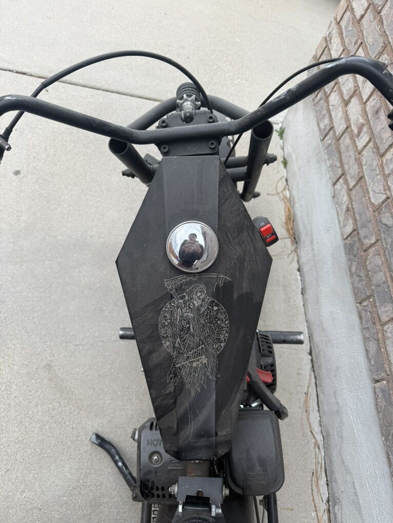 VenmoSuper cool mini bike, has a predator 212 that’s lightly used, it just needs a new carburetor and a new throttle. I was trying to mod it and never got around to it. Goes pretty fast and is super rad in the snow. Has custom etching around with a coffin style gas tank. Open to offers and trades Looking for outdoor gear, snowboarding gear, or fishing gear