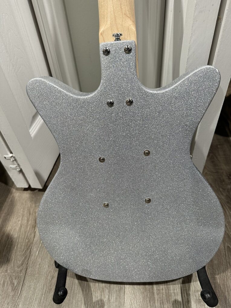 selling my dan electro 59’. it was refinished in a sparkly silver by the previous owner. has some texture to it but its done well. plays and sounds great. this is a great way to get a unique dan electro. everything works as intended. thanks for looking!