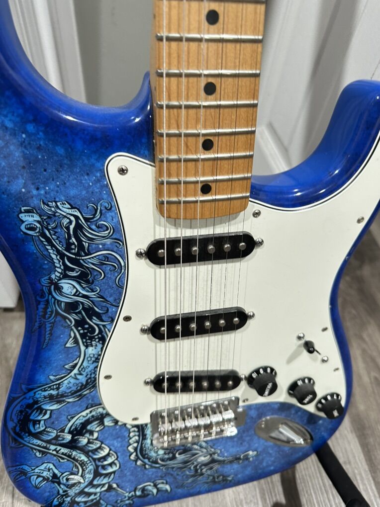 selling my Fender David Lozeau stratocaster. this was 1 of 5 designs in the series. definitely my favorite of the bunch. has some minor dings and impressions but nothing terrible. these are quite rare and dont come up for sale often. it was professionally set up when i got it 6 months ago. could use some strings. sounds and plays great. everything works as intended. only selling to cover some other gear purchases. may consider trades but cash is preferred. other strats will not be considered because i have too many. thanks for looking!