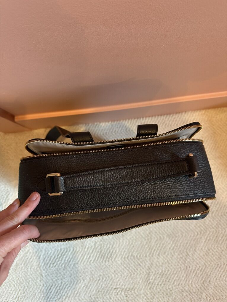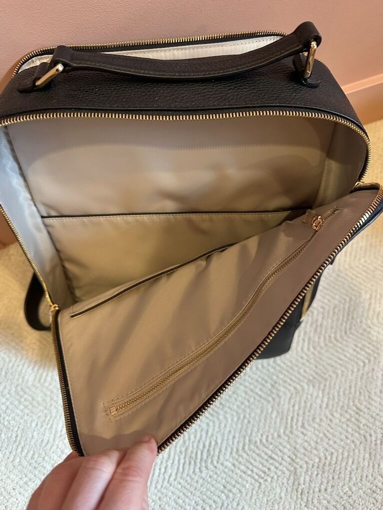 Black leather backpack from Quince, never used. Retails for $150. Price now reduced to $65.