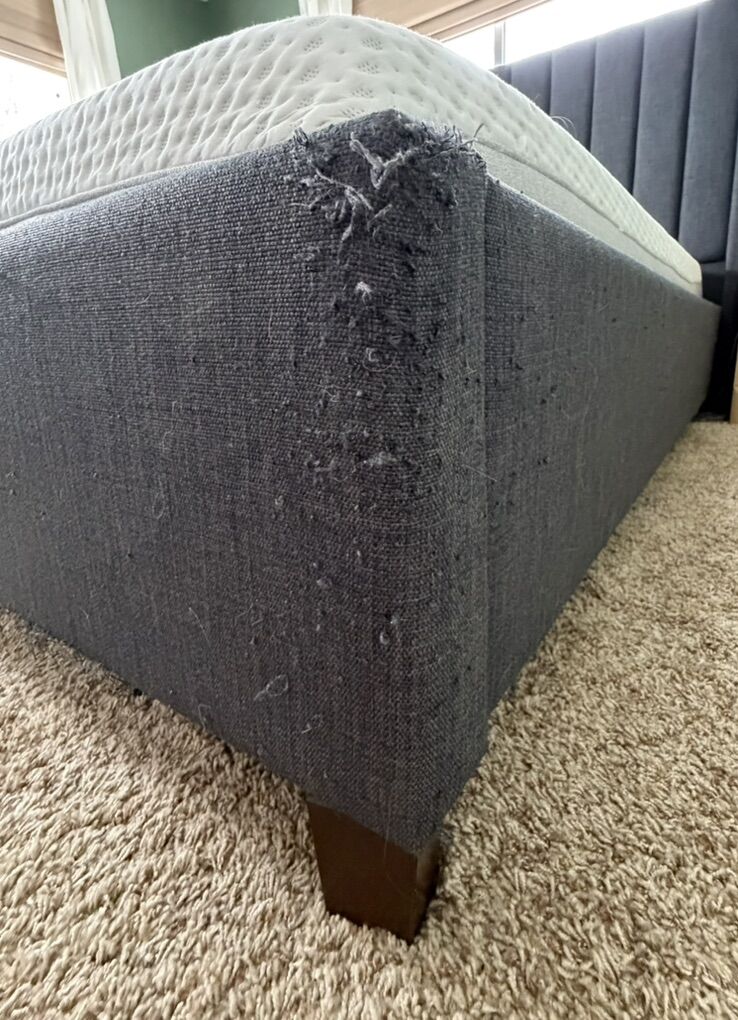 VenmoKing-size bed frame for sale (mattress not included). Please note that the buyer must pick up the item. Smoke free home Refer to the photos for details on any damage. Originally purchased from Malouf. Cash or Venmo