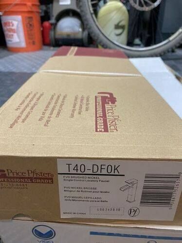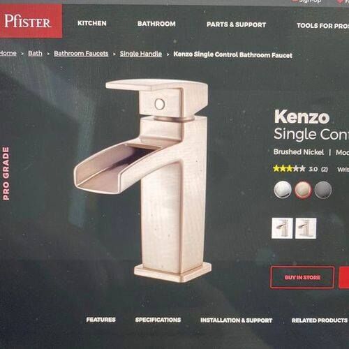 Pfister Kenzo waterfall faucet in brushed nickel. Single handle, modern. New in box. Currently $325 on Home Depot.