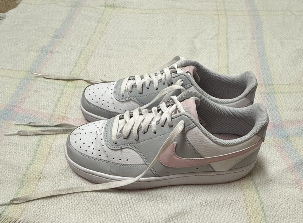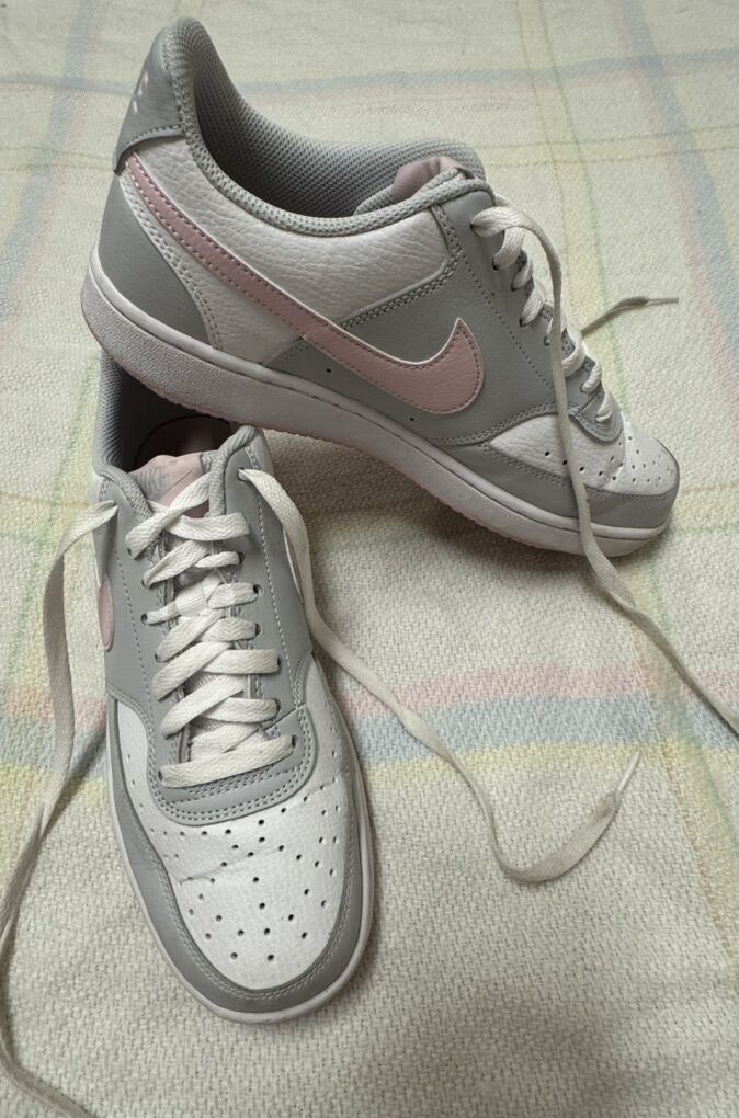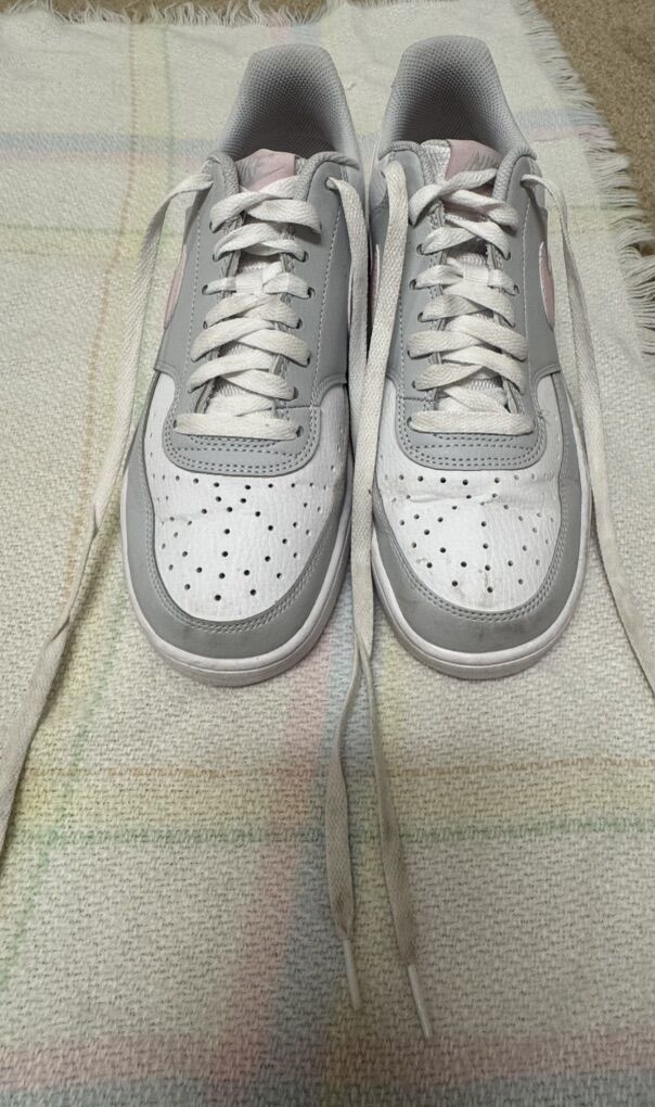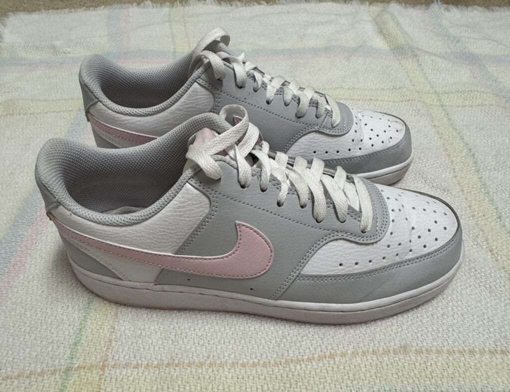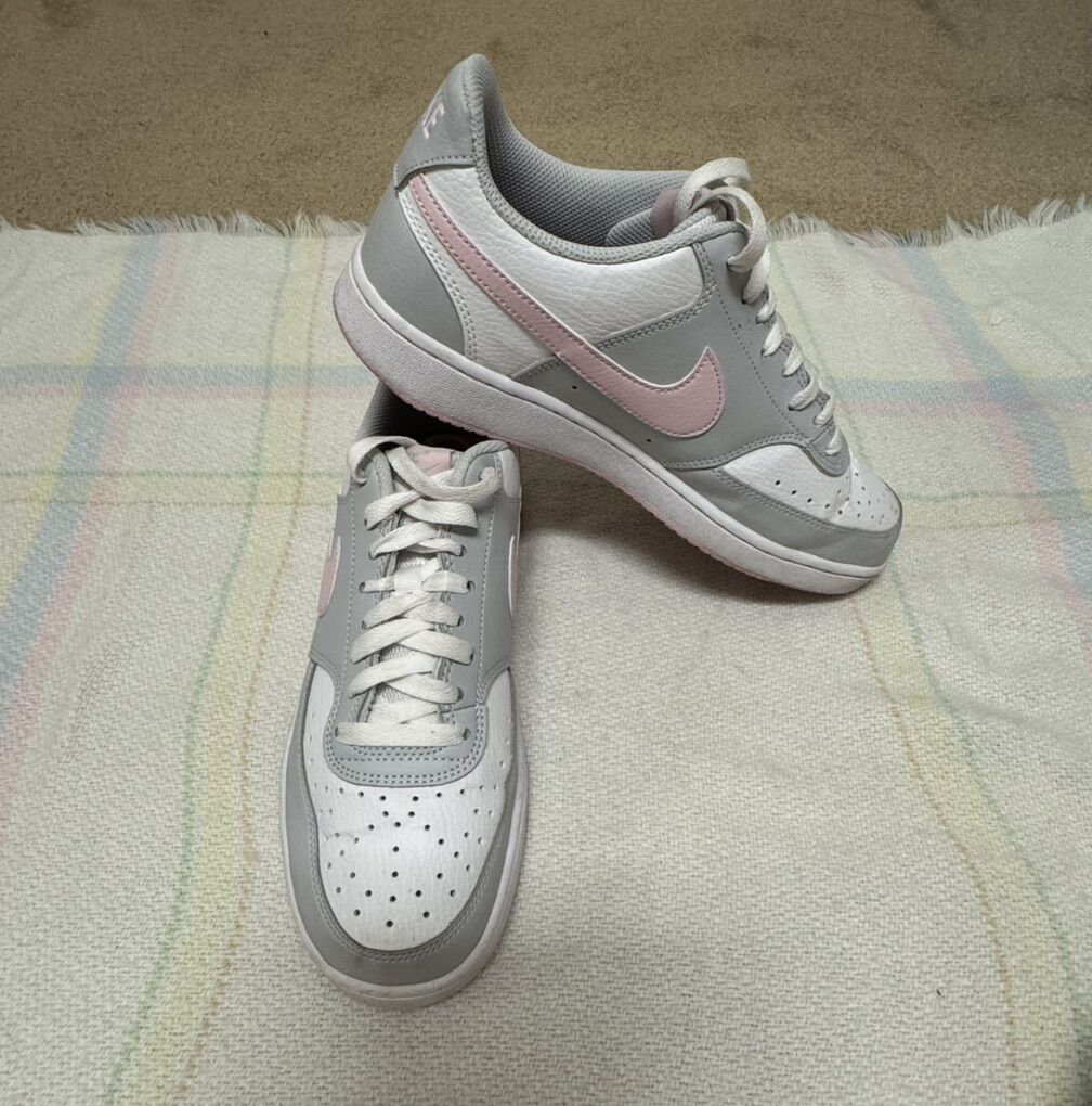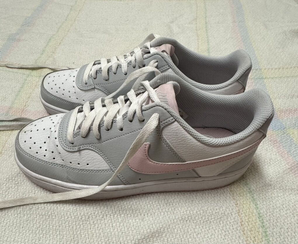 GooglePaySelling a pair of Nike Court Vision Low shoes in a clean grey and soft pink colorway. Only worn about a little more than a week before deciding they are too big for me. They have been sitting around so I decided to just sell them. Plenty of tread left and very clean. Size women’s 9.5. They are from a smoke free home. There is only minor natural creasing on the toe box. Retail is $85 + tax at Shoe Carnival - marked them down to half price! (OBO)