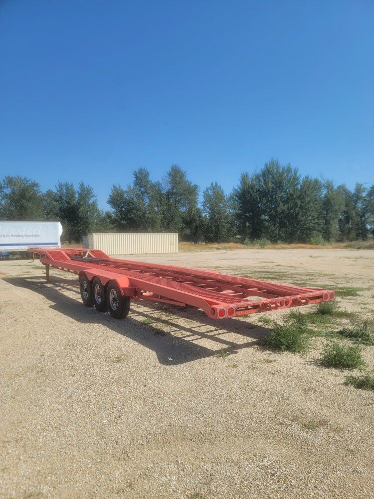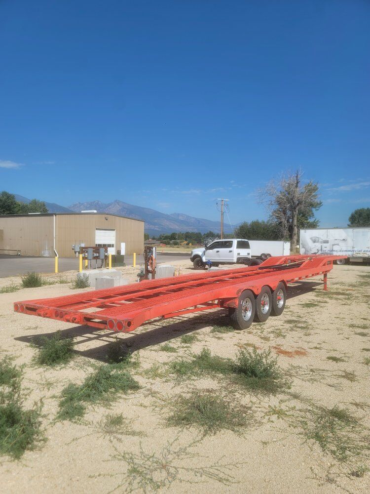 Venmo42 ft long. heavy duty steel ramps. king pin style 5th wheel. I used a goose neck adapter. tires only have 2000 miles on them, and then I bought another trailer, so I don't need this anymore. title in hand. spare tire has a cut in the sidewall, but the rim matches the other wheels. will fit a dually.