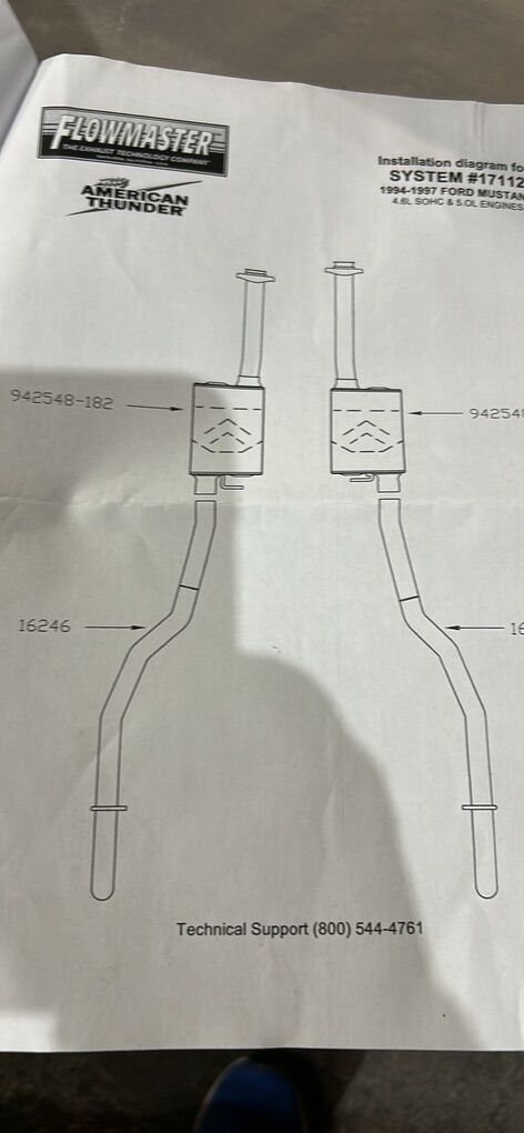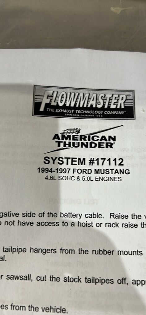 VenmoFormaster American thunder exhaust system number 17112. Fits in 1994 to 1997 Ford Mustang with a 4.6 LSOHC and 5.0 L engines.