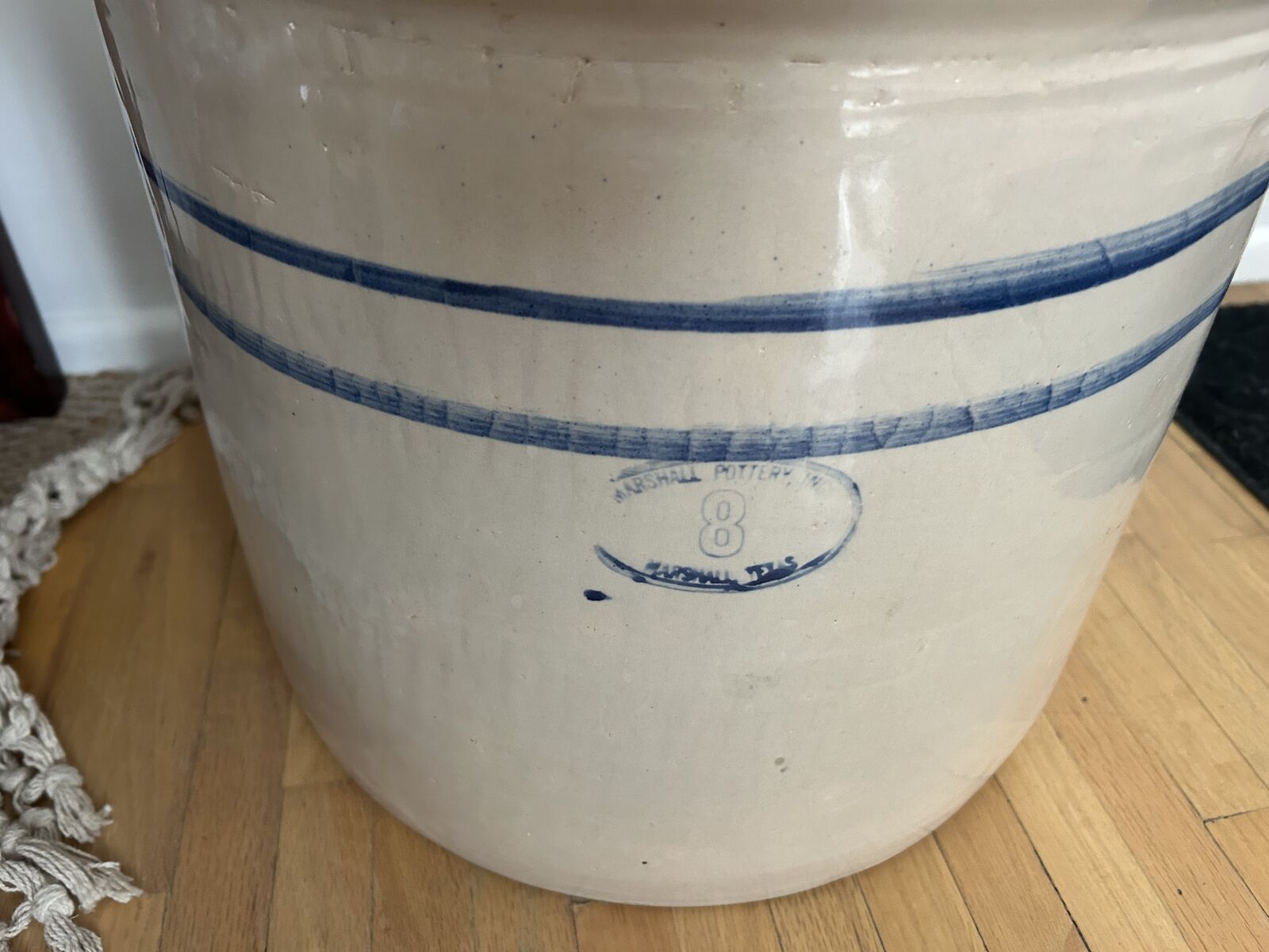 VenmoAntique Marshall Pottery 8 gallon crock. No cracks, beautiful glaze, we used for blanket storage for years. The letters OK are written in red on bottom of crock, I have not tried to remove. I am downsizing my collection of crocks but do not have them all listed.please let me know if want more info. Thanks