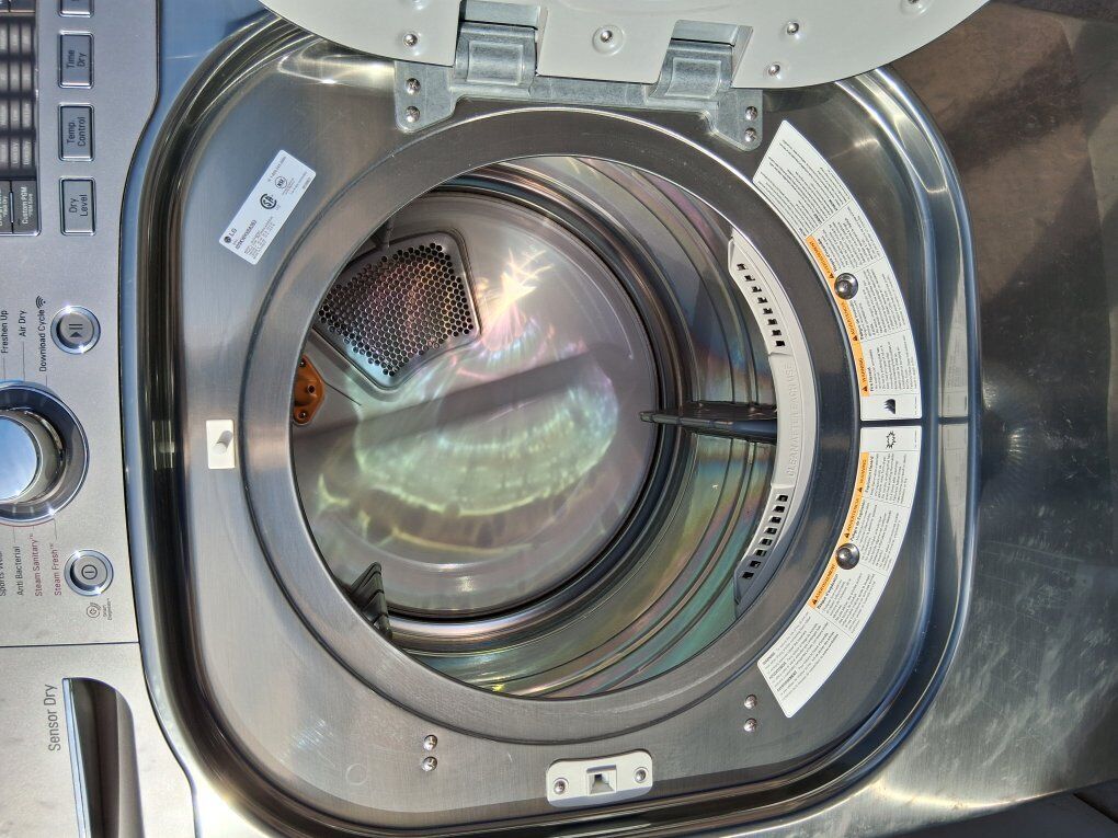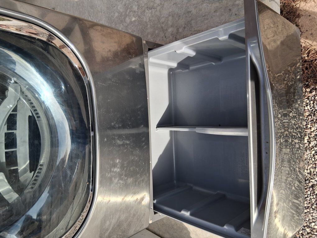 VenmoLG Front Load Dryer with pedestal storage drawer. Barely used! Great Condition! Comes with TrueSteam feature including specialized Steam Shelf, dryer rack insert for delicates, sweaters, shoes, and steam refresh cycles. Stainless Steel.