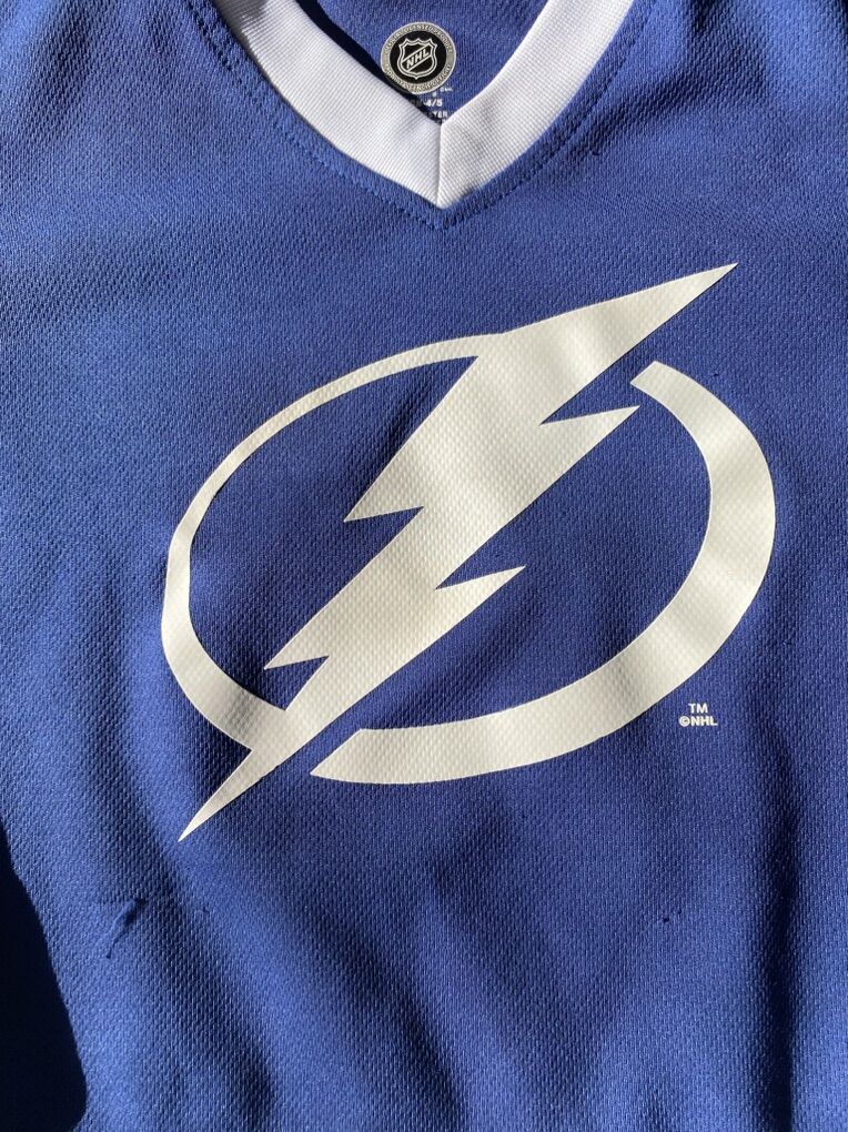 ApplePayThe NHL Tampa Bay Lightning Youth Replica Home Jersey in size Small (4/5) is an officially licensed jersey perfect for young hockey fans. Made in the iconic blue color of the team, this unisex children's jersey features the Tampa Bay Lightning team logo, making it a must-have for young Lightning supporters. With the NHL brand and official licensing, this jersey is a high-quality and authentic piece of fan apparel that will bring joy to any young hockey enthusiast.