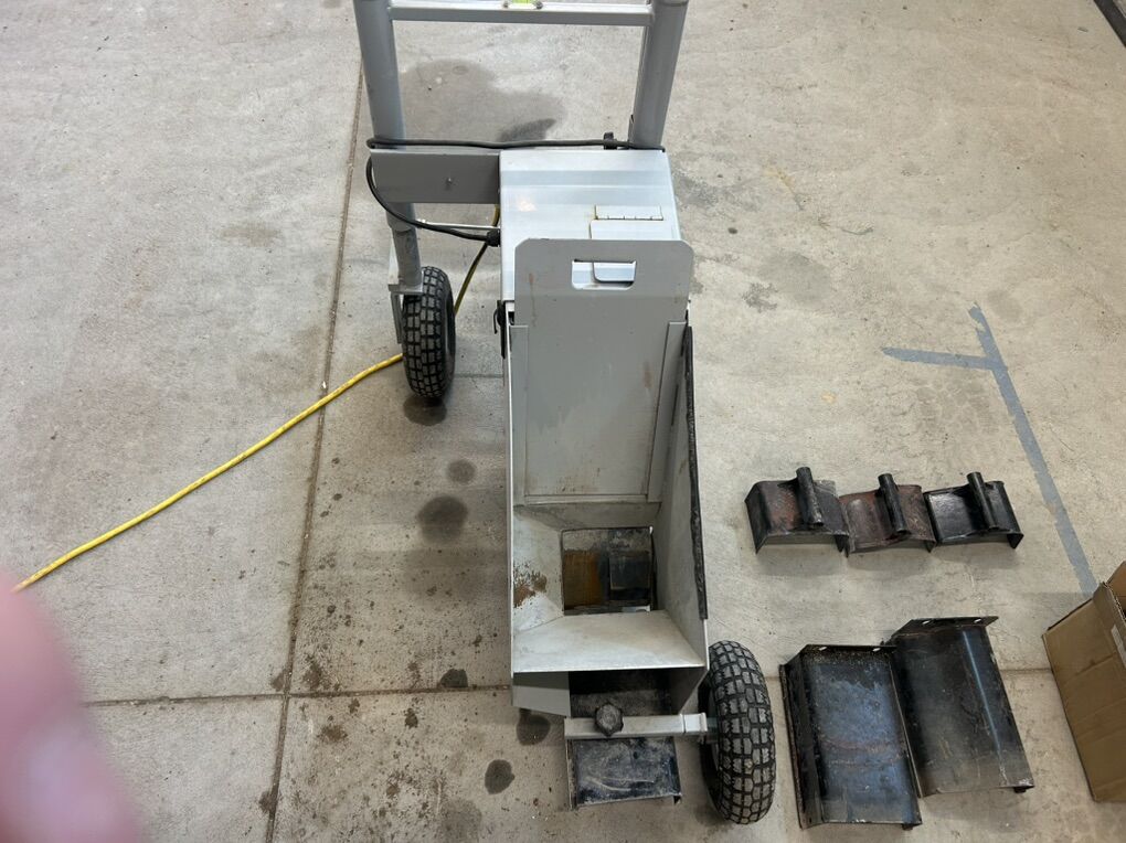 I have a fairly new clutch electric curbing machine for sale. It’s not a powerhouse but it gets the job done. It comes with the typical square, slant, and mower style curb molds. I also have a spare electric motor and a wheel for it.