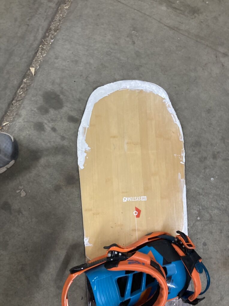 Base is great condition, had a couple scrapes on corners, I put opoxy on to fix and did not realize it was white. Can sand off, if you like. It’s a loner board so not wanting to put any more time in to it. Bindings are perfect shape. Asking 130$. Call or text Dave 4355650908