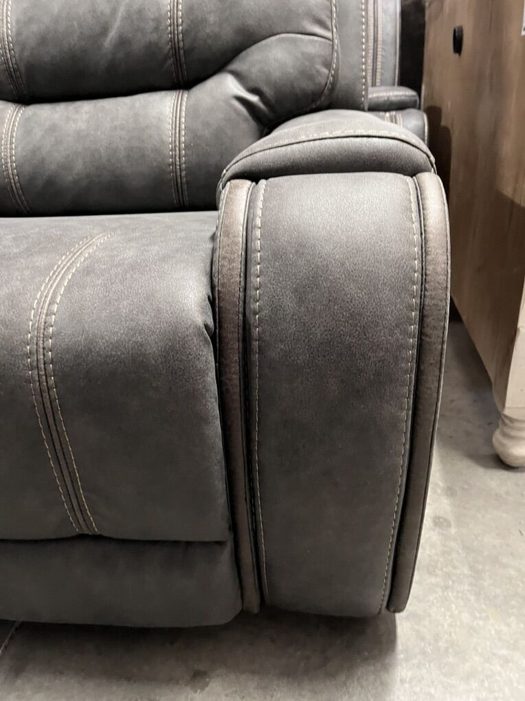 ApplePayThis sofa loveseat set is full power adjust(2 reclining seats in each couch). Polished microfiber, great for east cleanup. Hidden cupholders. USB ports for easy access charging.