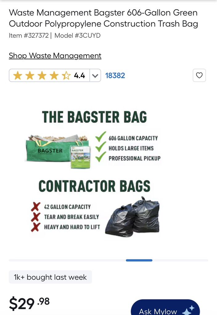 ZelleWaste Management Bagster 606-Gallon Green Outdoor Polypropylene Construction Trash Bag
