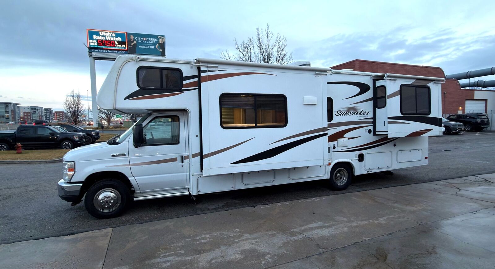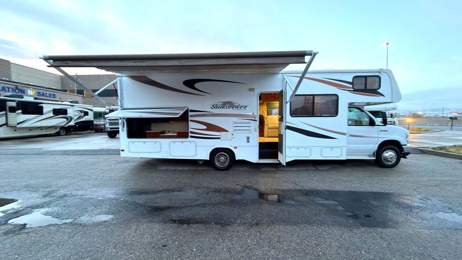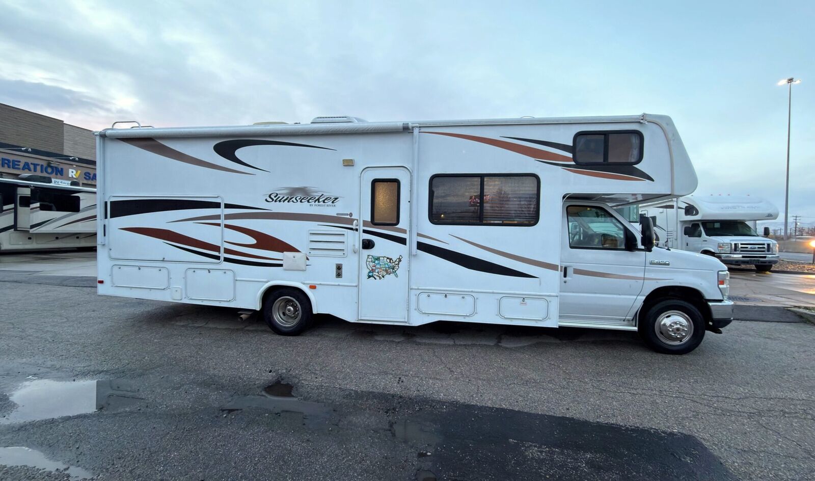 2013 Forest River Sunseeker 2860DS class C motorhome sitting under 30ft. Onan 4000kw generator so your are never out there with out power. 2 large living slideouts in the front & back bedroom to give you more room for the family or friends. All tires are in good shape, fiberglass body and decals do have some fading but no more than what you would expect for the year. Come down to Recreation RV Sales your Utah used RV dealer and check this out or contact us to schedule a walk through.