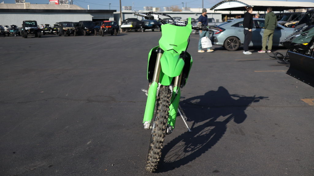 2025 Kawasaki KX™450X Tough terrain won't stop us from winning. With championship-proven technology and tuning to take on every challenge, the KX™450X motorcycle has what it takes to win outdoors. Get the off-road edge by riding the bike built to stay ahead of the rest. Features may include: POWER & PERFORMANCE BUILT TO STAY AHEAD The same championship-proven engine performance found in KX™ motocross bikes propels the KX™450X motorcycle to the finish line. Stay ahead of the competition with a powerful engine that delivers broad, useable torque and strong, responsive power. CROSS-COUNTRY TUNED SUSPENSION DOMINATE OFF-ROAD CONDITIONS The KX™450X motorcycle's high-performance, race-ready suspension is optimized for cross-country racing, especially on aggressive trails. ADVANCED TECHNOLOGY NEXT-LEVEL PERFORMANCE The KX™450X motorcycle's advanced controls are streamlined for rider convenience. Kawasaki TRaction Control (KTRC), Power Mode Selection, and Launch Control Mode are available at the push of a button. These features enable riders to quickly adjust power delivery and traction for riding conditions and preference. The KX450X provides advanced technology designed to inspire confidence. CHASSIS & ERGONOMICS RACE-WINNING CAPABILITY Stay ahead of the competition with a strong and lightweight chassis, agile handling, and exclusive ERGO-FIT® technology. ADDITIONAL Lightweight aluminum perimeter frame Straight exhaust port and center exhaust ODI lock-on grips Quick-release side cover offers tool-less air filter access Streamlined ergonomics for easy rider movement Coned disc-spring hydraulic clutch
