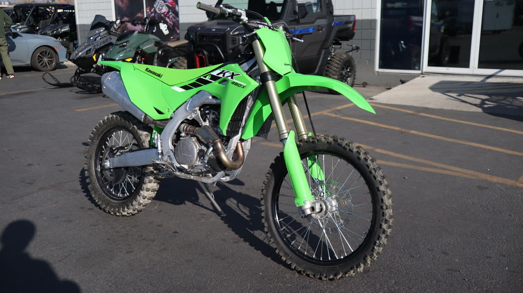 2025 Kawasaki KX™450X Tough terrain won't stop us from winning. With championship-proven technology and tuning to take on every challenge, the KX™450X motorcycle has what it takes to win outdoors. Get the off-road edge by riding the bike built to stay ahead of the rest. Features may include: POWER & PERFORMANCE BUILT TO STAY AHEAD The same championship-proven engine performance found in KX™ motocross bikes propels the KX™450X motorcycle to the finish line. Stay ahead of the competition with a powerful engine that delivers broad, useable torque and strong, responsive power. CROSS-COUNTRY TUNED SUSPENSION DOMINATE OFF-ROAD CONDITIONS The KX™450X motorcycle's high-performance, race-ready suspension is optimized for cross-country racing, especially on aggressive trails. ADVANCED TECHNOLOGY NEXT-LEVEL PERFORMANCE The KX™450X motorcycle's advanced controls are streamlined for rider convenience. Kawasaki TRaction Control (KTRC), Power Mode Selection, and Launch Control Mode are available at the push of a button. These features enable riders to quickly adjust power delivery and traction for riding conditions and preference. The KX450X provides advanced technology designed to inspire confidence. CHASSIS & ERGONOMICS RACE-WINNING CAPABILITY Stay ahead of the competition with a strong and lightweight chassis, agile handling, and exclusive ERGO-FIT® technology. ADDITIONAL Lightweight aluminum perimeter frame Straight exhaust port and center exhaust ODI lock-on grips Quick-release side cover offers tool-less air filter access Streamlined ergonomics for easy rider movement Coned disc-spring hydraulic clutch