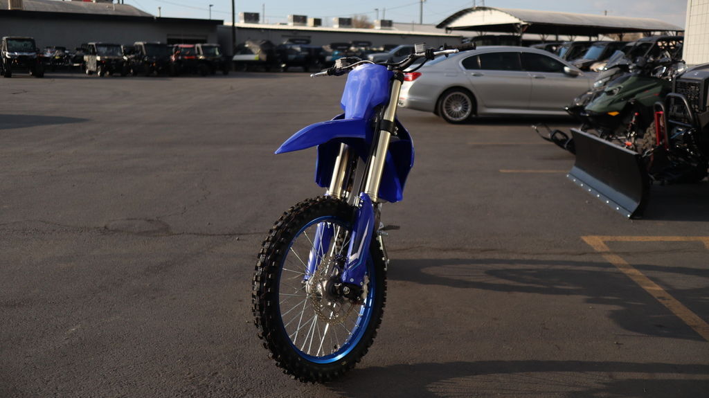 2026 Yamaha YZ450F Team Yamaha Blue PERFORMANCE REFINED The class benchmark. Yamaha took the championship winning YZ450F and made it even better with highly refined power and handling characteristics for a level of feel and control that unlocks a racer’s full potential. Features may include: Powerful 450cc Four-Stroke Engine Featuring a reversed cylinder head layout, forged aluminum piston, 39 mm titanium valves, lightened crank assembly and dry sump lubrication, the 2026 YZ450F's advanced DOHC four-stroke engine is light, compact and world renowned for its incredibly broad pulling power across the entire rev range Advanced Aluminum Bilateral Beam Frame The precisely tuned aluminum bilateral beam frame provides just the right amount of strength and flex for the perfect balance of stability and cornering performance. The result is a better handling machine with lighter feel, more agility and increased traction allowing the rider to enter corners with greater confidence and more line choices. Class-Leading Suspension The YZ450F's high-spec fully adjustable Speed Sensitive System KYB® coil spring-type fork is recognized as the gold standard in the 450 class, providing exceptional feel and bump absorption. A new high performance KYB® shock with new hand-operated low-speed compression clicker further enhances damping feel with less bump reaction, providing the confidence to ride harder for longer. Slim, Compact Ergonomics The YZ450F's slim, flat, compact body eases rider movement for improved control. The rider triangle is also optimized for increased legroom between the seat and foot pegs, with a carefully considered handlebar position for a more natural posture and enhanced rider comfort. Updated styling cues for 2026 now include a more compact front number plate, new two-piece side covers, sharper rear fender and new YZ graphics.