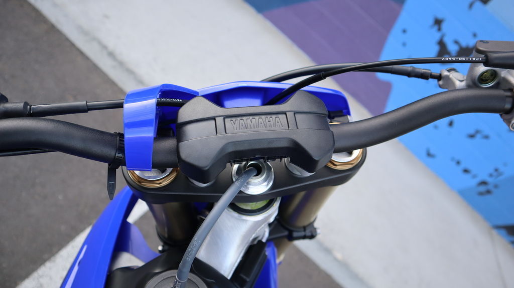 Ultra-light YZ250-based aluminum frame is matched to fully adjustable KYB 48mm forks with 11.8 in travel and a fully adjustable KYB shock with 12.4 in travel, separate high/low-speed compression, and Kashima Coat internals.