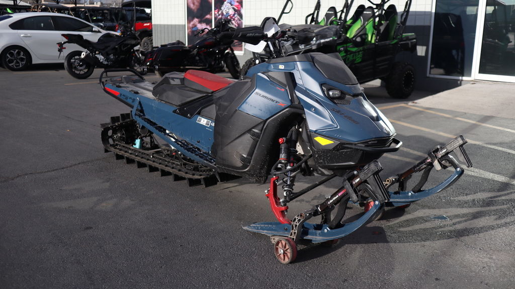 2025 Ski-Doo Summit® X® with Expert Package 850 E-TEC 165 H_Alt Powder 3.0_10.25 in Effortlessly agile, Summit snowmobiles paired with industry-defining Rotax power deliver dynamic deep-snow performance and instant response in technical winter terrain. The 2025 Summit X with Expert Package is precision deep-snow riding at its best, built for the most technical terrain. Highly predictable in tight, demanding areas, its consistency and performance are unbeatable. Ultimate precision and performance in a deep snow sled with features sharpened for most technical terrains. Features may include: Engine Rotax® 850 E-TEC®, Rotax® 850 E-TEC® Turbo R Rear suspension tMotion™ XT with adjustable limiter strap Front suspension RAS™ 3 with 34 in. ski stance Track PowderMax† Light, PowderMax† X-Light Special features E-TEC® SHOT™ starter standard, Adjustable brake lever, Pilot DS 4 skis, Short riser block, Premium LED headlights