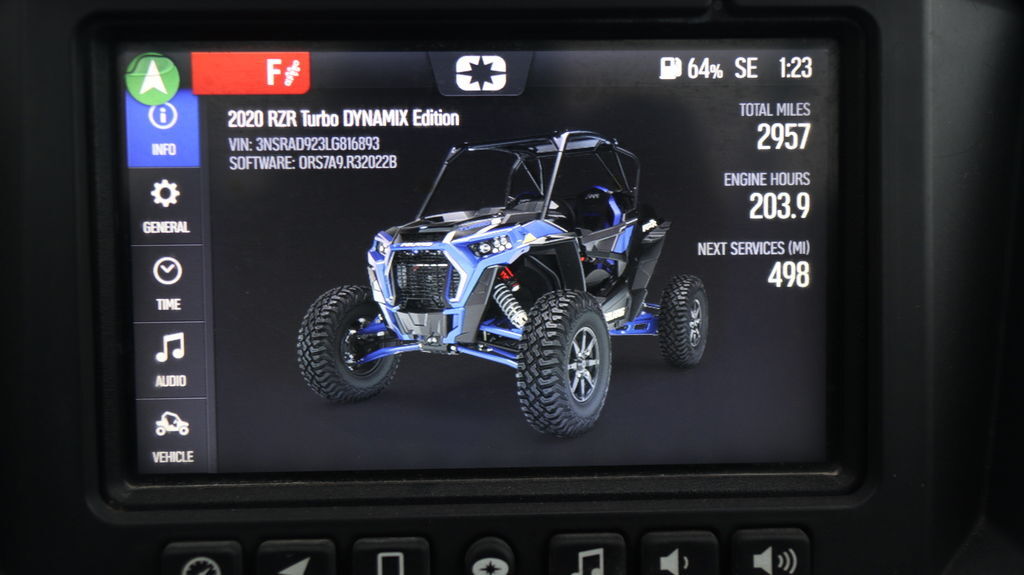 2020 Polaris® RZR® Pro XP® Ultimate EXPERIENCE THE POWER OF PRO Features may include: THE LATEST IN DESIGN, PERFORMANCE & STRENGTH The best RZR ever, and the start of a new generation made for the off-road's most demanding drivers. See the latest in performance, design & strength. PRO PERFORMANCE Taking off-road performance to the next level. It’s power when and where you crave it most. It’s suspension that redefines control and travel through unrelenting terrain, and handling with instant response and flat-out stability that’s unprecedented. VISIONARY DESIGN It leads with a visual punch. Its menacing stance and distinctive cut signal the unmatched performance and technology within, providing a driver-centric execution of absolute off-road dominance. BRUTE STRENGTH The Strongest RZR Ever. Designed to absorb punishment in the world’s most unforgiving playgrounds. Featuring the strongest chassis we’ve ever made, with stouter axles, cooler clutching and capability that breaks all barriers. PRO POWER RZR has more wins & championships than any other, and this winning pedigree has been infused into the new 181-horsepower ProStar engine. Delivering complete off-road dominance with mind-bending acceleration, all tuned around the 20-50MPH range, when you're using it most. SAVAGE SUSPENSION An Industry Leading 22” of usable suspension travel on a 64” SxS, that’s almost as much as a 72” wide Turbo S. AND it’s the kind that you can actually use in a suspension event before bottoming out on the skid plate. DYNAMIX 2.0 Control in challenging fast & gnarly terrain is instantaneous with automatic, on-the-fly adjustments, steering wheel controls, for mode switching and the "X" button for high-speed surprises, and improved FOX 2.5 Podium Live Valve Shocks you can take corners flatter, dominate big whoops, and ride in greater comfort. RIDE COMMAND Connect beyond the terrain of the off-road experience with revolutionary Ride Command technology. Communicate, navigate, connect, track and visualize every moment with brilliant 7" glove-touch screen clarity. ROCKFORD FOSGATE AUDIO A true factory installed fully integrated off-road audio system. Rockford Fosgate engineered the first off-road tune, designed specifically for the PRO XP platform, with two front speakers under the dash, and two front tweeters on the A-pillars. Purpose built to be the loudest, highest performing system the industry has ever heard, constructed from the finest materials, and engineered to be incredibly rugged. DYNAMIX Active Suspension 2.0™ Rockford Fosgate Premium Audio Ride Command 7" Display Premium Painted Panels LED Accent Lights & LED Head Lights Retractable 6-Pt Harness Telescoping Steering Wheel & Button Controls 181 HP Turbo 20"/22" Usable Travel FOX 2.5 Live Valve Shocks 30” MAXXIS Carnivore Tires (8-Ply) Xtreme Performance Isolated True On-Demand AWD/2WD.