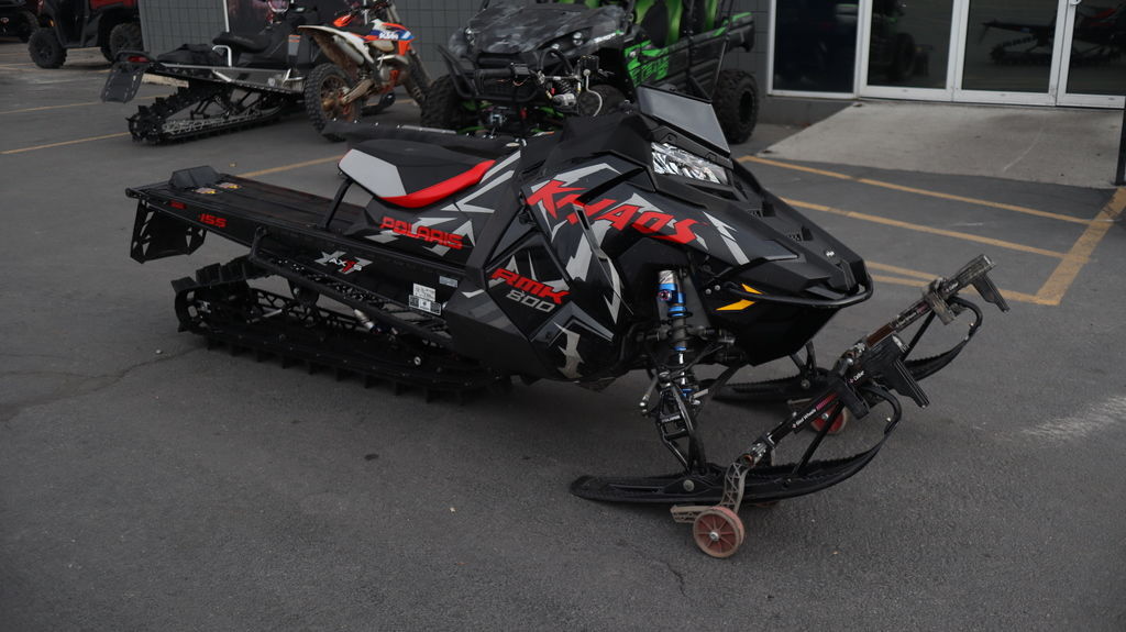2020 Polaris® 800 RMK® Khaos® 155 The Most Agile All-Mountain Sled Rewrite the Rules for the Rest to Follow The RMK® KHAOS® 155 is the most flickable mountain sled - ever. Designed for all riding zones for a lively and dynamic backcountry experience. Features may include: All-Mountain Architecture Designed to provide transfer and traction for light handling and control plus the best response in all riding zones. AXYS® Chassis The raised AXYS® chassis increases clearance and reduces drag to keep you on top of the snow. It is purpose-built for mountain riding and allows for faster and easier climbing and instantaneous lift to pop onto the snow faster. The aluminum over structure is lightweight and durable for all types of riding. Liberty® Engine Choices for Every Rider Built to integrate seamlessly with the lightweight and agile Polaris® chassis, Liberty® engines feature class-leading power-to-weight ratios and set a new benchmark for ultimate performance with our complete line-up of powerful options. Rider Balanced® Control The AXYS® platform features Rider Balanced® positioning that delivers ultimate control for the rider for effortless riding. PRO-RMK® React Suspension™ The PRO-RMK® React Suspension™ provides riders with the most effortless ride in the deep snow. Experience less fatigue with the most predictable ride. It includes a 36"-38" stance, a sway bar designed for predictable handling, and forged a-arms and spindles optimized for strength and durability. Immediate Response The most agile all-mountain sled comes standard with Walker Evans® Velocity Shocks for the best of the best in various mountain conditions. Plus, the light and rigid design of the KHAOS® Rear Suspension improves weight transfer for more control to deliver more power directly to the snow. PowderTrac® Running Boards - 800 Models The PowderTrac® Running Boards have been developed for maximum snow clean out and maximum strength. Built from extruded aluminum with bonded cast lugs, they boast an open area of over 50% and integrated traction that is machined in for sure footed performance. There is now additional open space at the back of the boards by the rear pad to reduce snow build up. PowderTrac® XT Running Boards - 850 Models The lightweight PowderTrac® XT Running Boards were developed for extreme riders with new geometry for improved sidehilling and deep snow capabilities. The improved ergonomics maintain usable space for the rider and traction at the rear of the boards. Instantaneous lift and immediate response - plus the "Proven Polaris® Benchmark" of the 800 Cleanfire® H.O. engine developed with the AXYS® platform 800 Cleanfire® H.O. Engine PRO-RMK® React Suspension™ Walker Evans® Velocity Shocks 15 x 155 x 2.6" Series 6 Track QuickDrive® Low Inertia Drive System