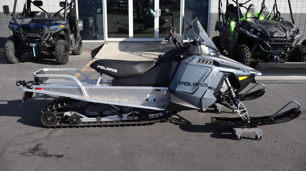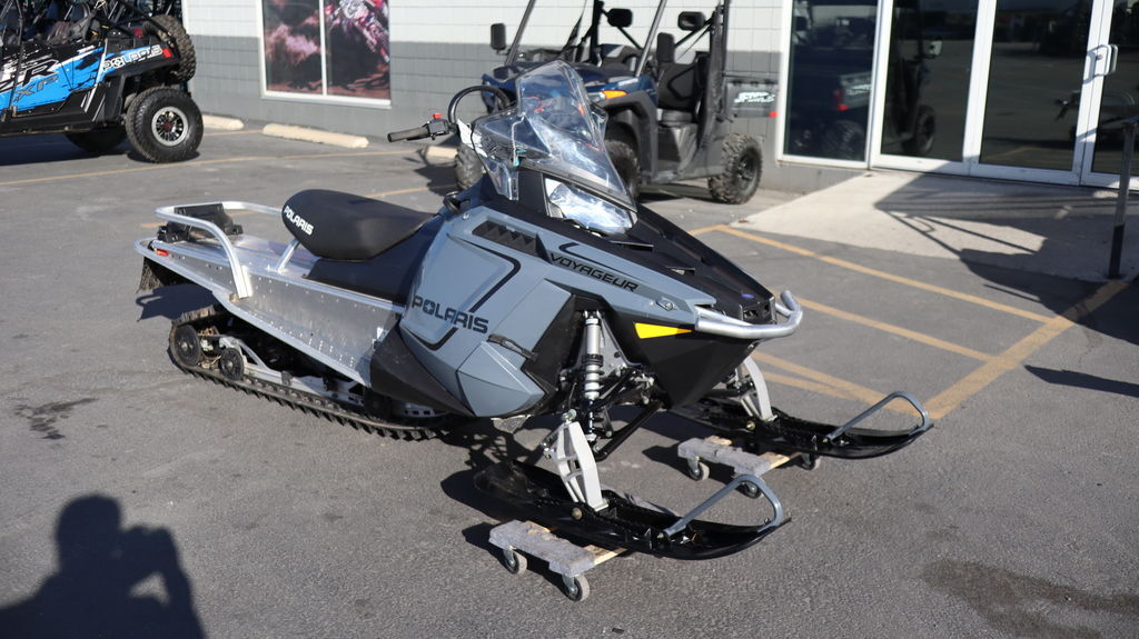 2023 Polaris® 550 Voyageur 155 Perfect Mix of Work and Fun Features may include: Ultimate Floatation The Voyageur is built to deliver performance wherever your snowmobiling day takes you. From accessing the power line to checking the trap line, aggressive tracks and tough, wide skis keep you on top of the snow. PRO-RIDE Chassis The 550 Voyageur is built on the PRO-RIDE chassis that delivers intuitive handling in a sled that is fun to ride. 144 Coil-Over Rear Suspension The coil-over rear suspension of the 550 Voyageur 144 is designed for better flotation and deep snow performance with improved on-trail ride. By eliminating the torsion springs and redesigning the torque arms, this skid weighs substantially less. 155 Articulated Rear Suspension The 155 rear suspension features an articulated rail for the best off-trail snowmobility and to prevent trenching when backing up. The rail tips up at the rear so that the track can ride over obstacles and is easier to back up. Unmatched Hauling With its hitch, rear rack, and Polaris rear suspension technology, the 550 Voyageur is a capable vehicle that maitains control and precision while on trail or in the deep snow. Integrated Storage & Cargo Rack The 550 Voyageur features an integrated cargo rack to haul whatever the job requires, and features a series of easily attached storage options. Hitch The hitch is hinged low for great versatility and superior towing capability. Proven Handling With the perfect blend of Polaris suspension technology, the 550 Voyageur delivers the best off-trail performance with confident trail handling at any speed. RMK Adjustable Front Suspension Nimble yet stable, the adjustable RMK Adjustable front suspension delivers superior ride performance and handling on or off trail. Polaris IFP Polaris IFP shocks provide a great foundation for riding and handling when boondocking Gripper and Pro-Float Skis The 550 Voyageur 144 comes equiped with Gripper Skis for great traction and flotation while delivering on trail handling. The 550 Voyageur 155 is equipped with Pro-Float skis for the ultimate floatation in the deepest snow.