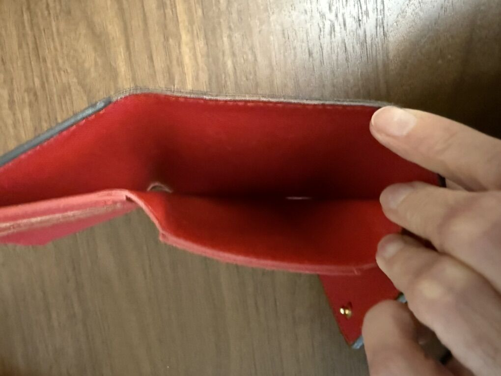 Color matched red pressed stud for closure.