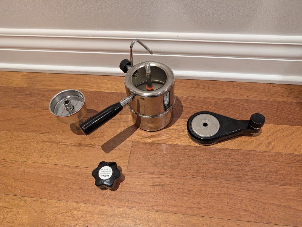 GooglePayItem Description: For sale is a Vintage Bellman CX-25 Lever Espresso Maker in good working condition, complete with the following accessories: Included: • Bellman CX-25 espresso machine (lever group) • Wooden espresso tamper (fits center post baskets) • Set of replacement filters/screens • Extra gaskets and PTFE shim discs (new rebuild kit) • All silicone seals and spacers shown in photos Condition: • Machine is complete and structurally sound • Mechanically functional — lever, group, and portafilter work as intended • Small amount of rust/oxidation on the center piston column (visible in photos); does not affect performance • Group and portafilter seal surfaces are clean and complete • Gaskets and shims are new spare parts for future rebuilds Notes: This is a manual, direct-flame espresso maker — no pump or electricity required. Great for collectors, vintage espresso enthusiasts, or anyone who likes classic lever-style brewing. Perfect for hobbyists who want a quality vintage unit with extra maintenance parts included. Specifications: • Model: Bellman CX-25 • Lever / manual espresso machine • Includes tamper / spare seals / filters • Condition: Used – Good
