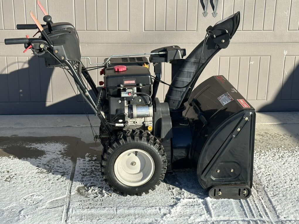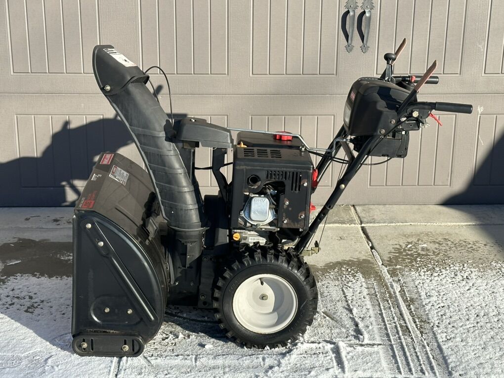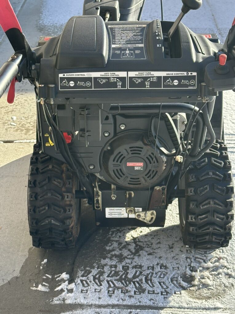 VenmoPowerful 357cc engine with push-button electric start. 30-inch clearing width — clears wide paths fast! Self-propelled drive with aggressive tread tires for great traction on ice and deep snow. Trigger-controlled power steering for effortless turning. Heated handles, LED headlight, and remote chute control. Absolute beast for heavy Utah winters — serrated augers chew through packed snow and throw it far. Well-maintained, runs strong, ready to tackle the next storm.