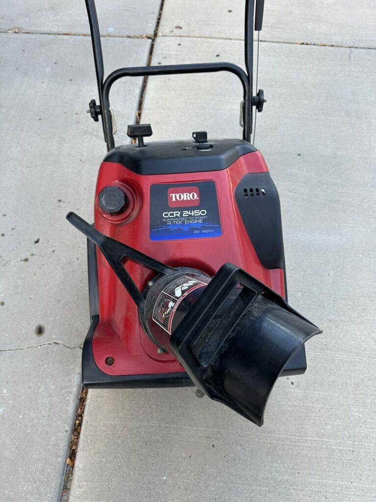 VenmoToro CCR2450 Single-Stage Snowblower Great running Toro Power Clear 2450 snow thrower! • 20” clearing width • Powerful R-Tek 2-cycle engine (Guaranteed to Start • Paddle-style auger eats up snow fast • Lightweight and easy to maneuver • Folding handle for easy storage • Starts easily, runs strong, ready for winter! Perfect for sidewalks, decks, and smaller driveways. Used but well-maintained and 100% functional. See Less