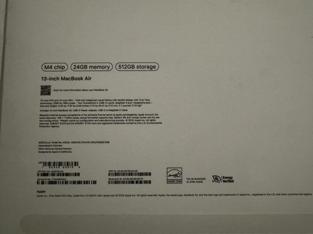 ZelleAwesome Apple MacBook Air 13-inch for sale! Has the super fast M4 chip, 24GB memory, and 512GB SSD storage. Color is Midnight. Battery health is normal.