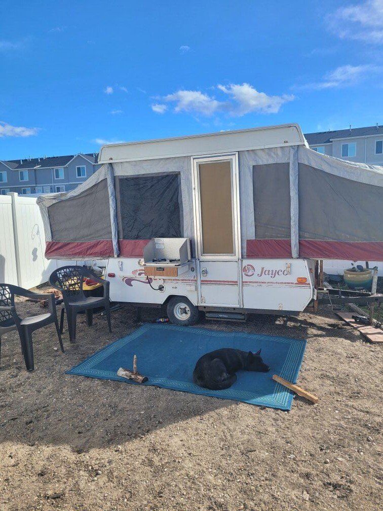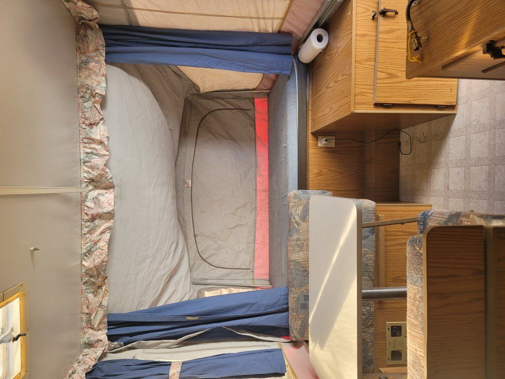 Venmohas new tires,currently covered. took fridge out, not sure if heater works it was loud, and we use a mr. heater. our family enjoyed last year but its not enough room for a family of 5 with grown up kids.