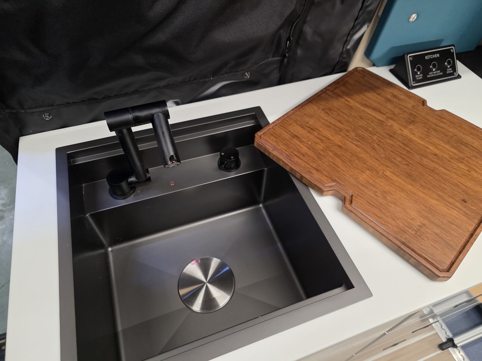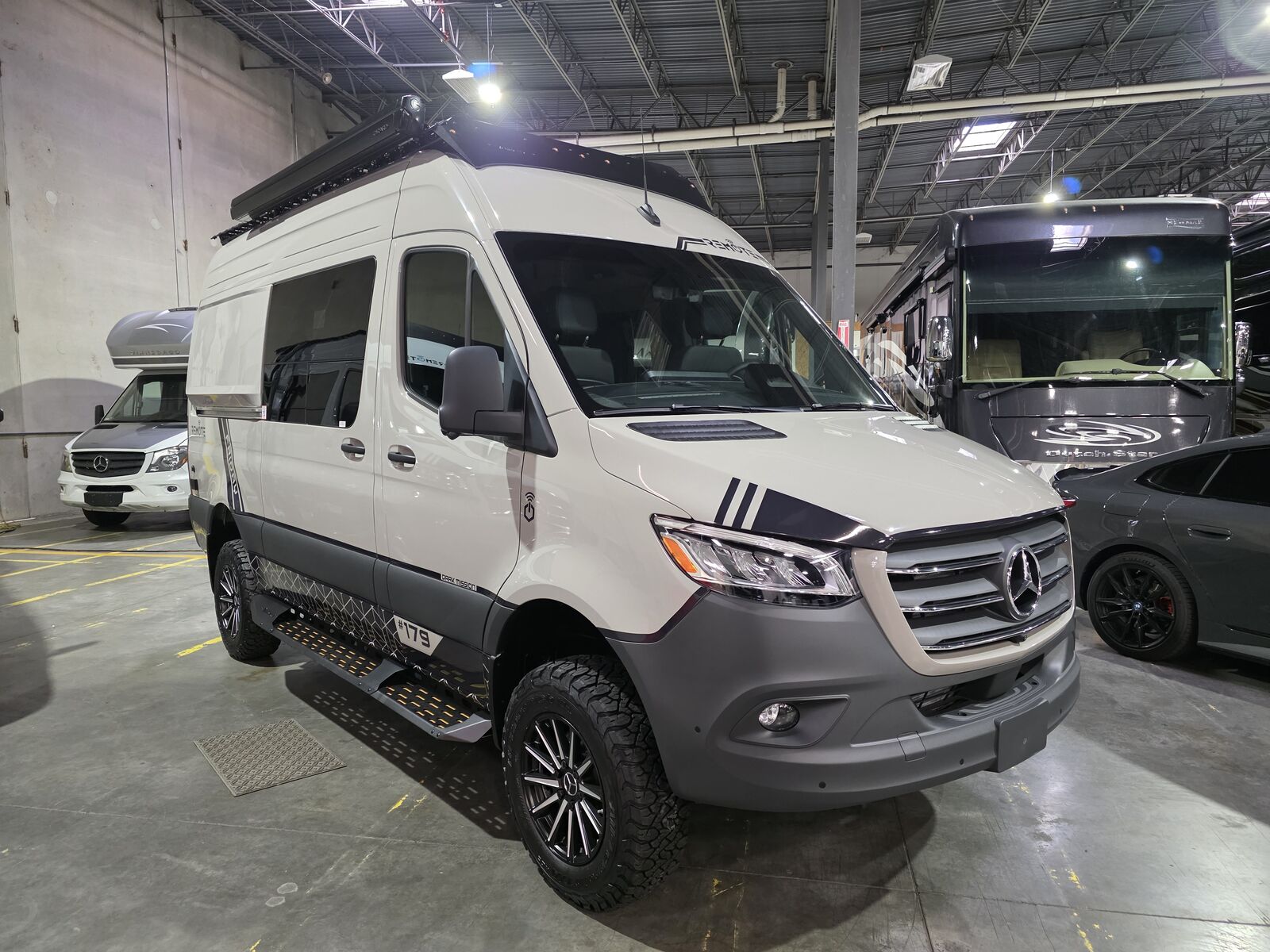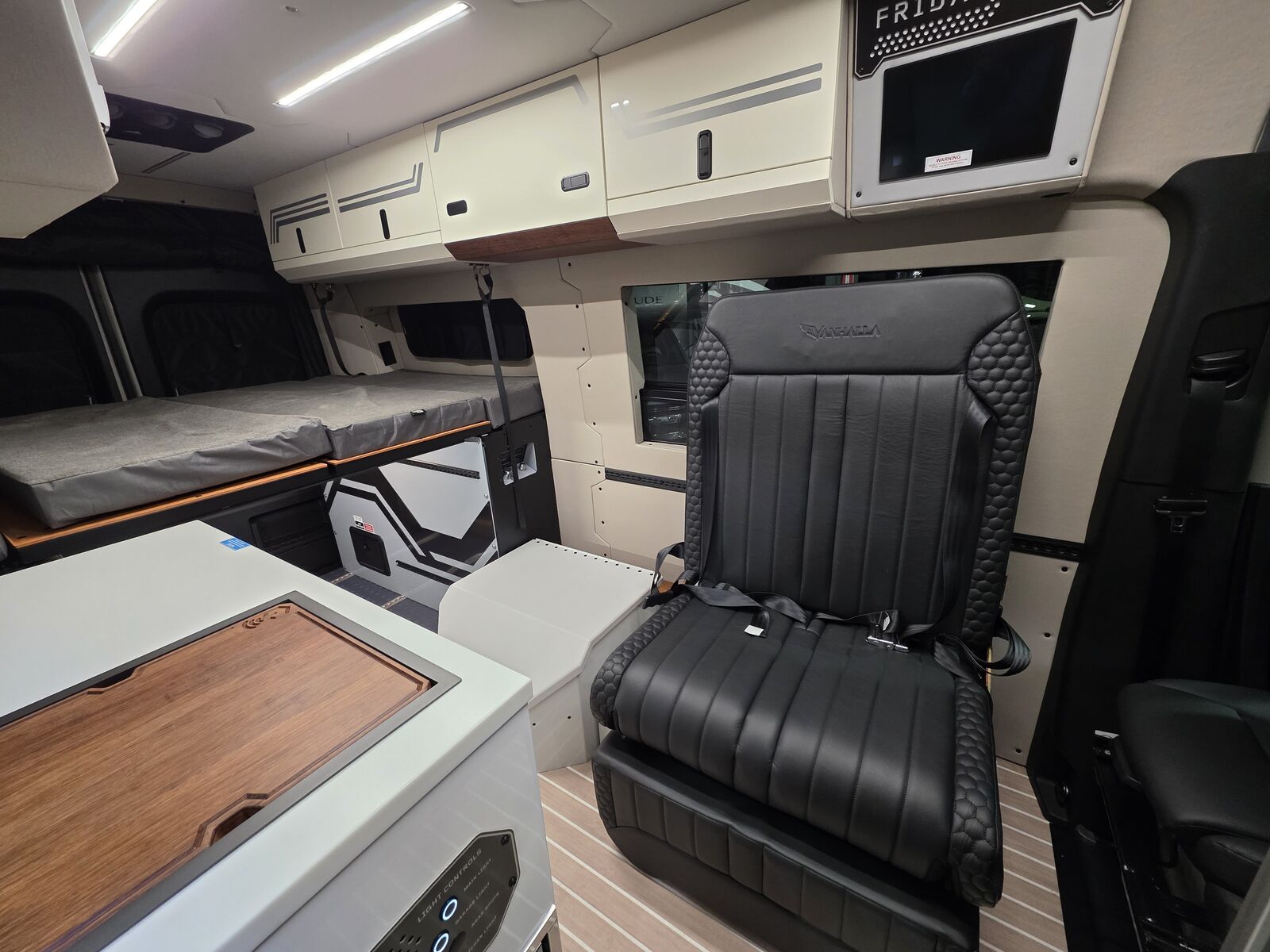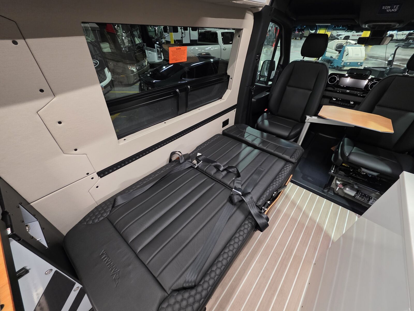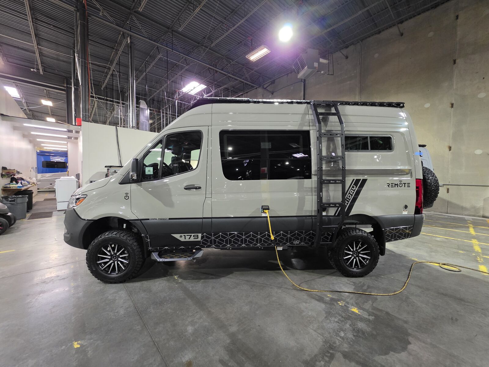 • Mercedes-Benz Sprinter 2500 AWD • 2.0L 4-cylinder turbo diesel engine • 208 horsepower, 9-speed automatic transmission • High-capacity 51V lithium power system • Integrated solar charging and shore power • Starlink Mini • Climate-controlled, Kilmat, Solarcore, and Havelock insulattion. • Queen-size legless bed with convertible living space • Full kitchen with induction cooktop and refrigerator • Cyber Shower system with recirculation for extended off-grid bathing • Pennyworth touchscreen system control for power, water, and lighting • All-terrain tires, roof rack, ladder, and powered awning • Vanhalla Rotating sleeper seat and door carrier tire mount • Heavy duty opti-leaf spring pack and Rixen hydronic system