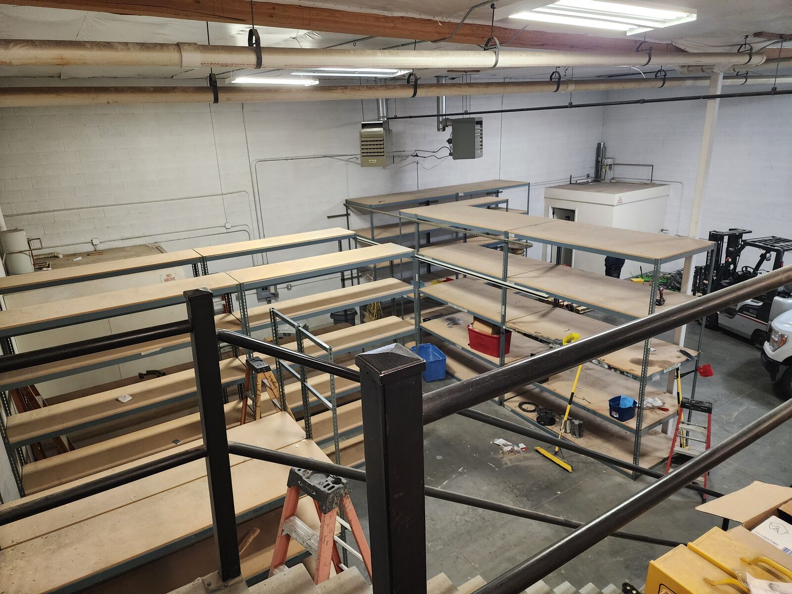 19 foot ceilings with great storage mezzanine.