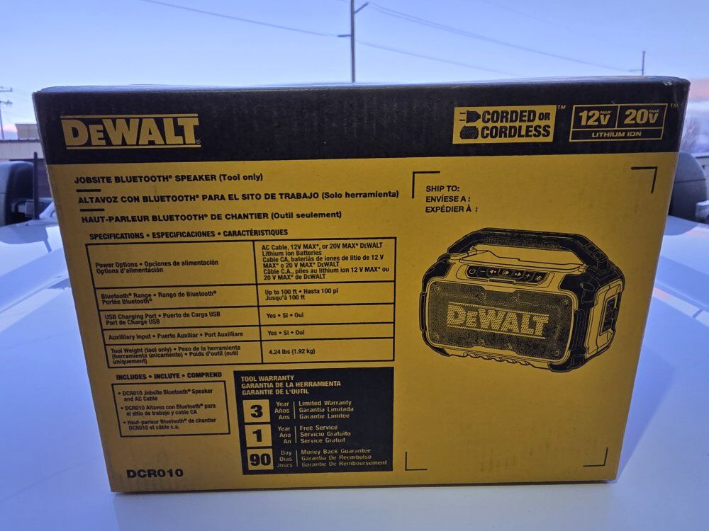 Includes: DEWALT 20V MAX* Bluetooth® Speaker