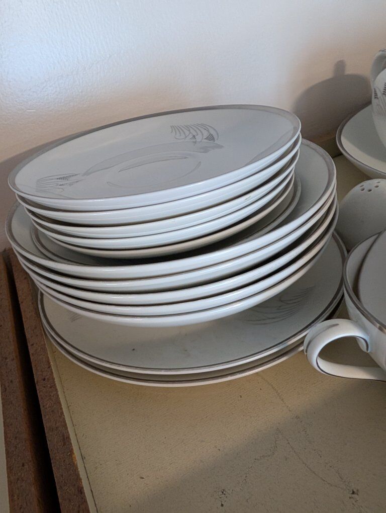 Vintage Fukagawa Arita Silver Wheat #928 China Set - 30+ Pieces Service for 8+ Japan PorcelainExcellent vintage condition, no chips/cracks noted. Hand-painted wheat motifs, silver rim/trim. Partial set includes:12+ saucers10 dinner plates (~10.5")6+ demitasse cupsCreamer & lidded sugarServing bowlPerfect for collectors or daily use; hand wash recommended.