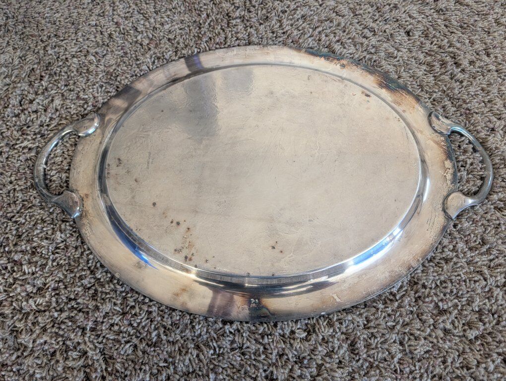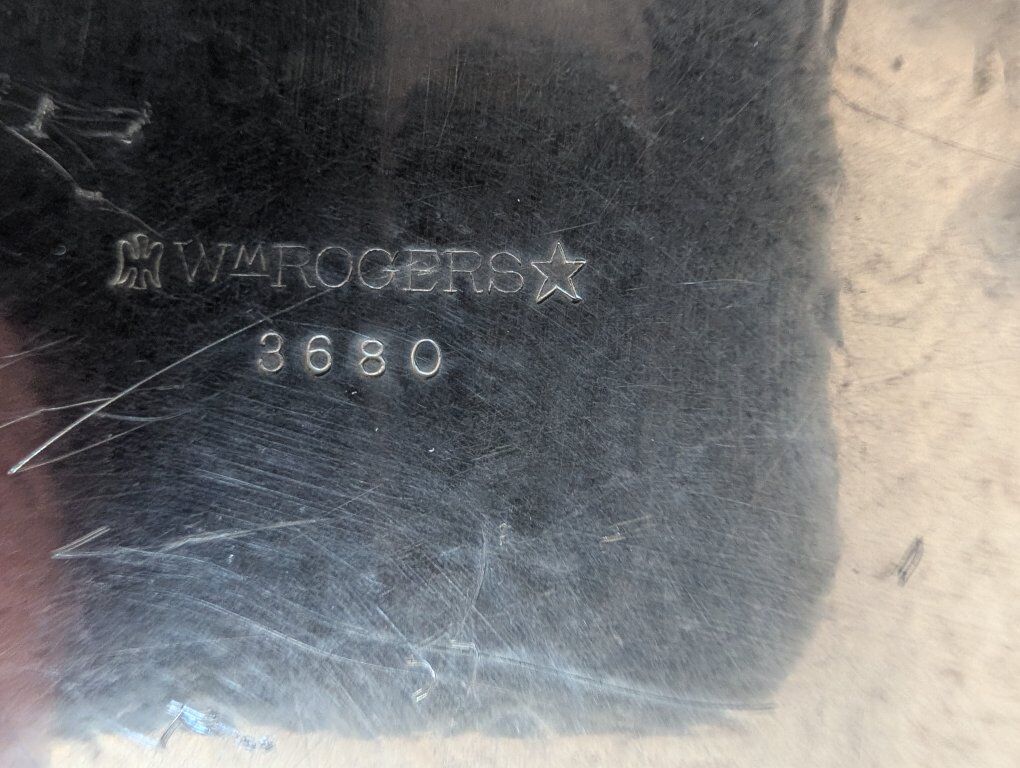GooglePayYou are purchasing a nauthentic vintage silver-plated serving trays by Wm. Rogers (International Silver Company) — a classic American silversmith whose products were widely used in fine dining and hotels throughout the 20th century. Included: Large oval silverplate tray with smooth rolled rim and integrated handles. Clean, heavy, elegant mid-century design. Ornate etched floral serving tray with rope-twist rim and decorative handles. Stamped “WM ROGERS 3680” — a known International Silver banquet pattern. These are true vintage silverplate pieces, not modern reproductions. Condition Tray shown authentic vintage wear including: • Tarnish • Light scratching • Patina and surface marks No structural damage or warping. They display beautifully and can be left as-is for a vintage look or polished to bright silver if desired. See photos for exact condition.