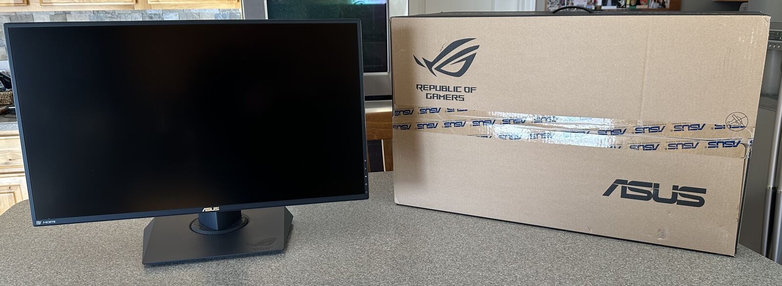 For sale is one Asus PG279QZ Gaming Monitor (see specs below). Unit is in Very Good condition with no scratches or damage and display is bright and clear. Used by adult in smoke free home. Comes with monitor, power cord, displayport cable, HDMI cable, and USB cable. Box with all packaging is also included.