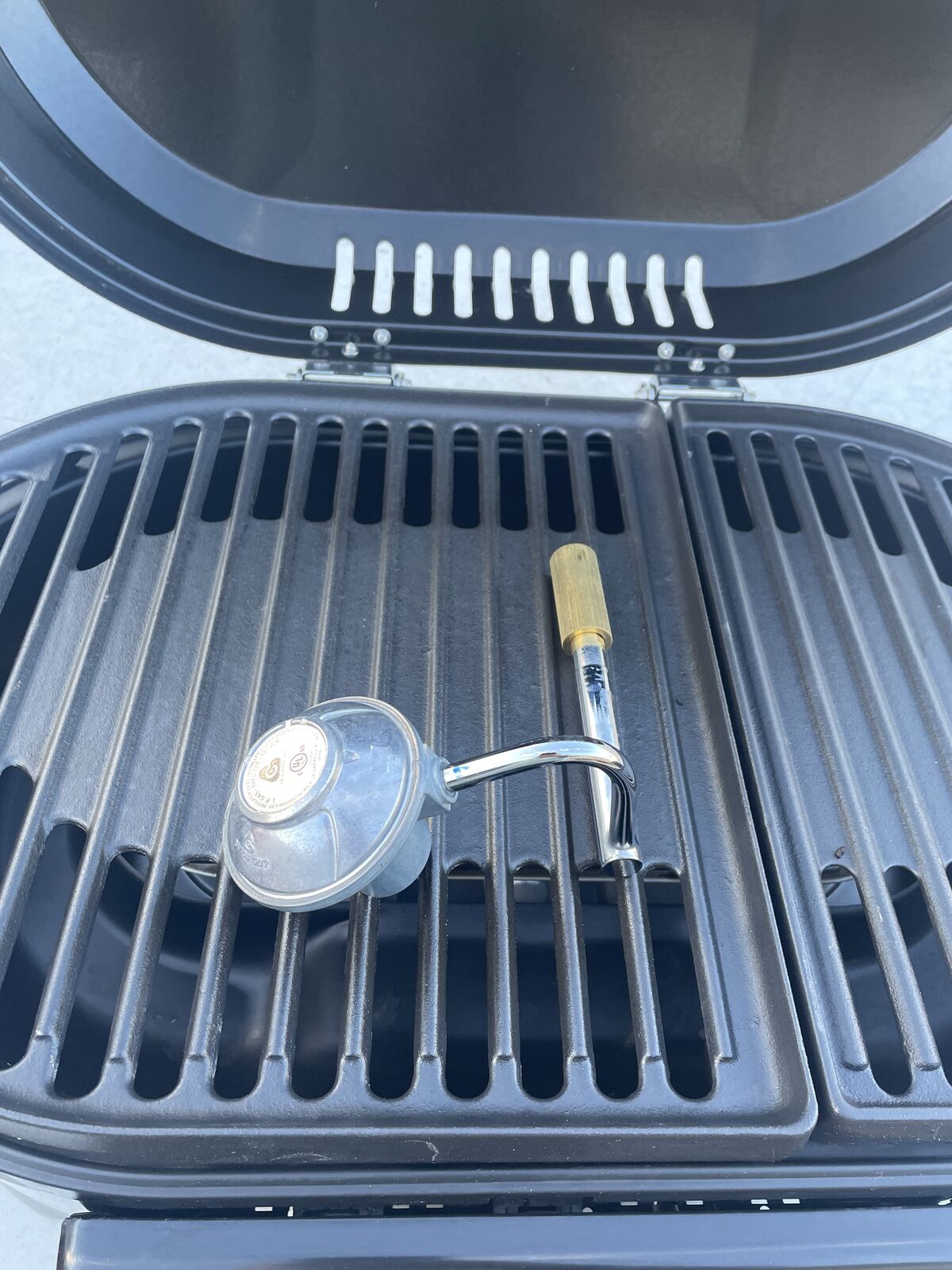 New Coleman Table Top Grill, never been used. Up to 11,000 BTU of grilling power and 225 sq. in of cooking area. 2 adjustable burners and precise temperature control. Water pan catches grease and removable for easy cleaning. Instastart ignition for push button lighting. Uses 1 pound propane cylinder. Portable grill ready of camping, tailgate parties, or backyard barbecues,