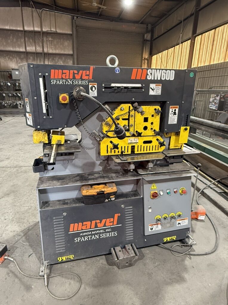 ZelleMarvel 60 Ton Iron Worker Like new machine Punch, shear and notch functions 2 foot pedals Comes with almost $4000 worth of dies (too many to list individually). Will consider trades