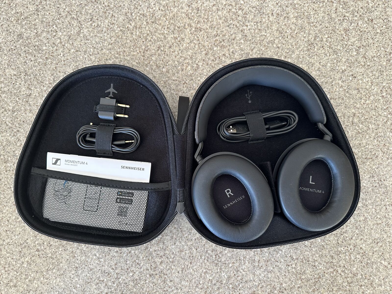 For sale is one Sennheiser Momentum 4 wireless headphone. I received this as a gift some time ago and never used them except for a brief testing, probably less than 2 hours. None of the cables have been used as the pictures can attest. Includes box, case, cables, and instruction manuals.
