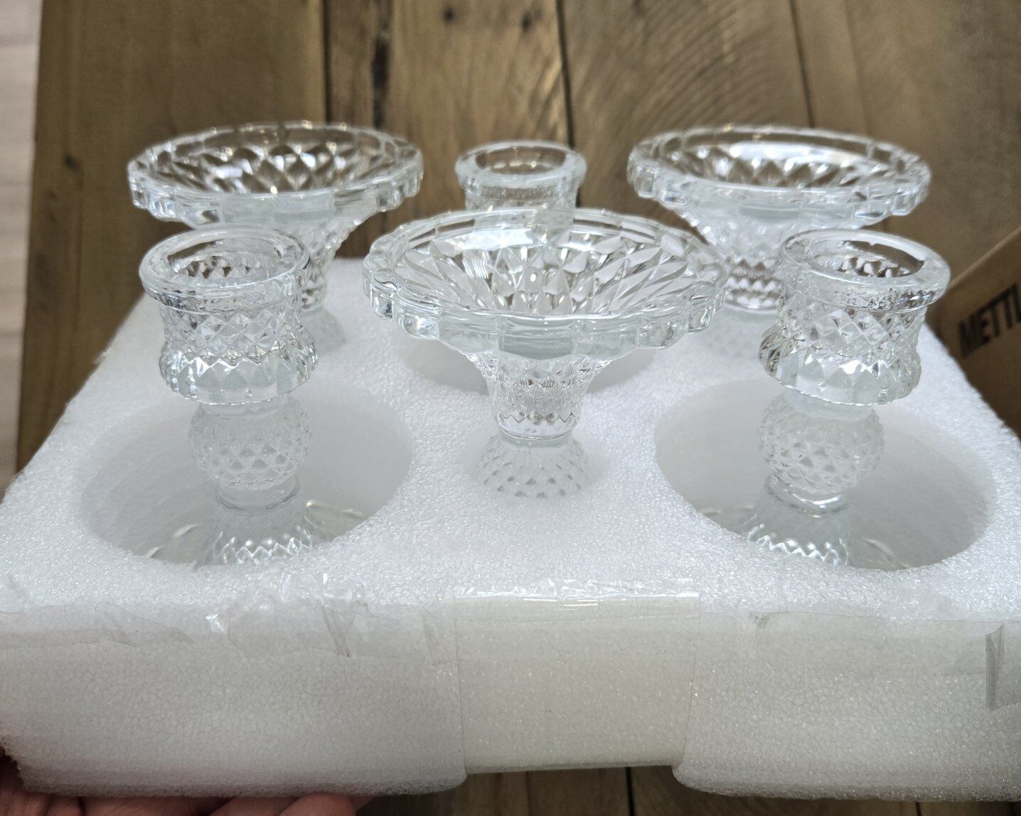 New set of 6 glass candlestick holders.