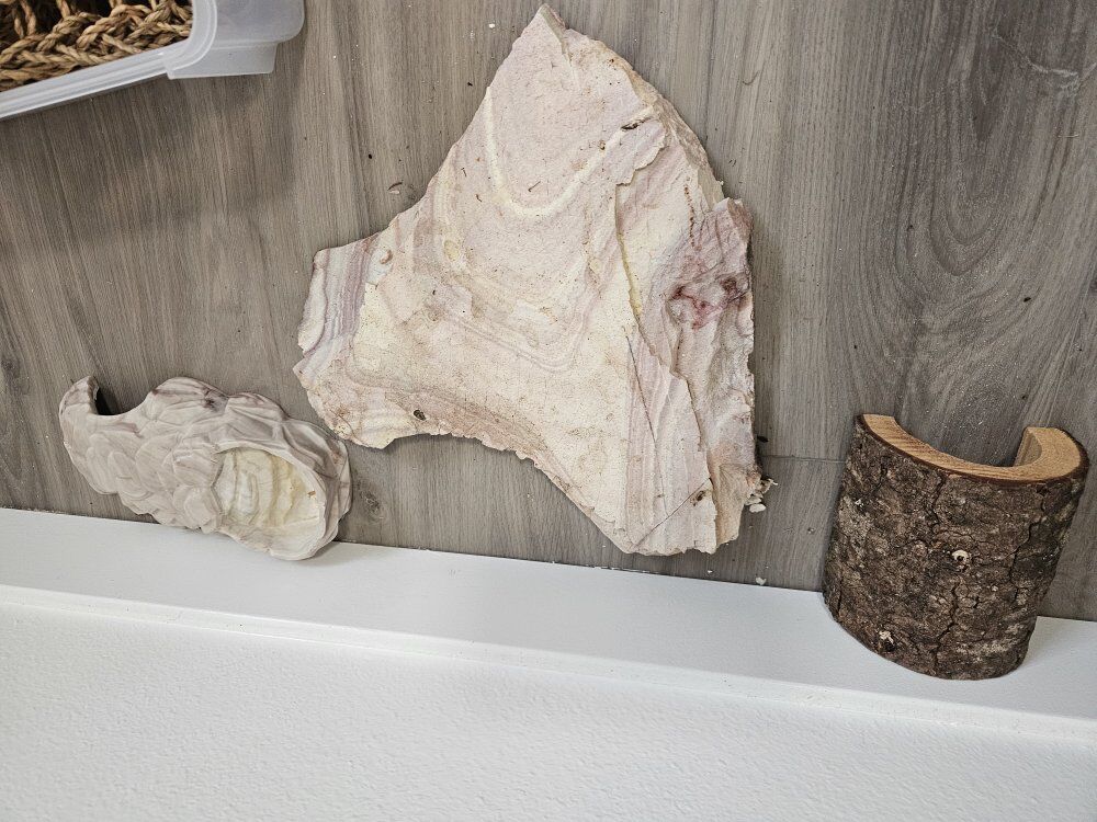 Lots of accessories for various setups. We've collected lots as we've housed a few different reptiles over the years. I have one log left a few lengths of heating pads, a few hanging nets and hides. Selling together or separate.